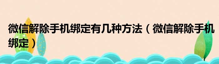 微信解除手机绑定有几种方法(微信解除手机绑定)