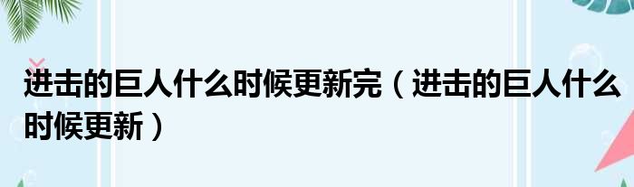 进击的巨人什么时候更新完(进击的巨人什么时候更新)