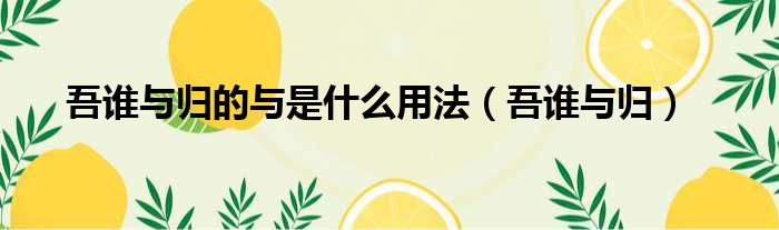 导读 大家好,今天小六子来为大家解答以下的问题,关于吾谁与归的与是什么用法,吾谁与归这个很多人还不知道,现在让我们一起来看看吧!1、出自: