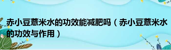 赤小豆薏米水的功效能减肥吗(赤小豆薏米水的功效与作用)