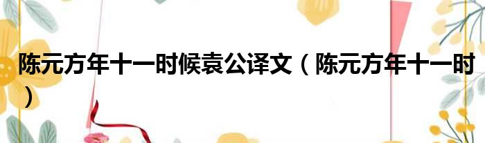 导读 大家好,今天小六子来为大家解答以下的问题,关于陈元方年十一时候袁公译文,陈元方年十一时这个很多人还不知道,现在让我们一起来看看吧!1