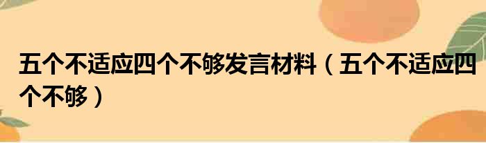 导读 大家好,今天小六子来为大家解答以下的问题,关于五个不适应四个不够发言材料,五个不适应四个不够这个很多人还不知道,现在让我们一起来看