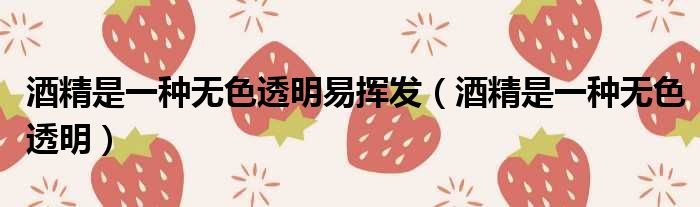 酒精是一种无色透明易挥发(酒精是一种无色透明)