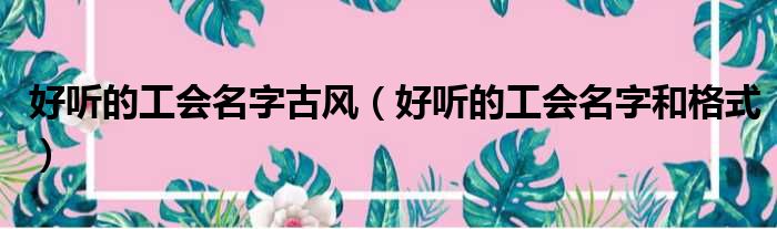 导读 大家好,今天小六子来为大家解答以下的问题,关于好听的工会名字古风,好听的工会名字和格式这个很多人还不知道,现在让我们一起来看看吧!1