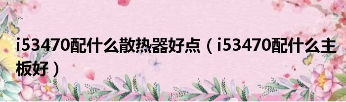 导读 大家好,今天小六子来为大家解答以下的问题,关于i53470配什么散热器好点,i53470配什么主板好这个很多人还不知道,现在让我们一起来看看吧