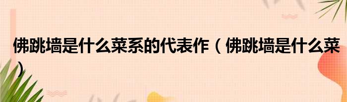 佛跳墙是什么菜系的代表作(佛跳墙是什么菜)