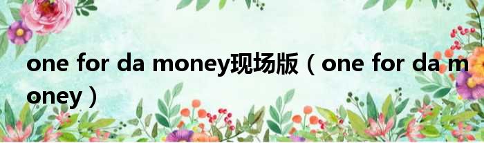 大家好,今天小六子来为大家解答以下的问题,关于one for da money现场版,one for da money这个很多人还不知道,现在让我们一起来看看吧!