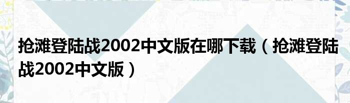 抢滩登陆战2002中文版在哪下载(抢滩登陆战2002中文版)
