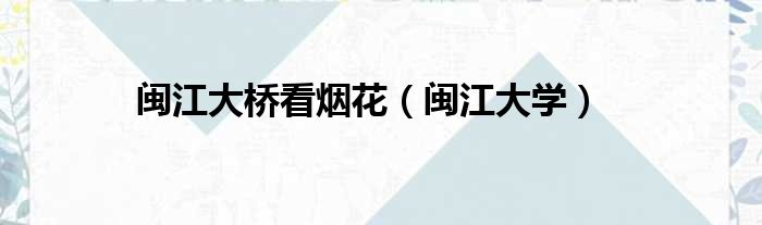 导读 大家好,今天小六子来为大家解答以下的问题,关于闽江大桥看烟花,闽江大学这个很多人还不知道,现在让我们一起来看看吧!1、我就是闽江学院