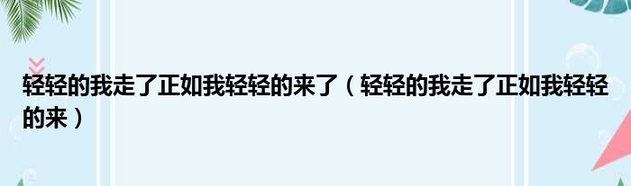 轻轻的我走了正如我轻轻的来了(轻轻的我走了正如我轻轻的来)