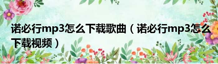 诺必行mp3怎么下载歌曲(诺必行mp3怎么下载视频)