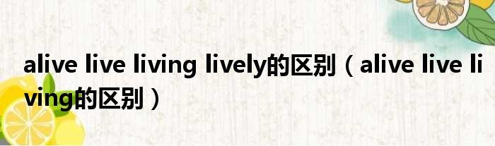 大家好,今天小六子来为大家解答以下的问题,关于alive live living lively的区别,alive live living的区别这个很多人还不知道,现在让我们一起来看看吧!