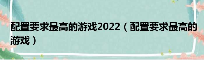配置要求最高的游戏2022(配置要求最高的游戏)