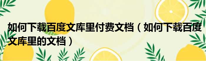 如何下载百度文库里付费文档(如何下载百度文库里的文档)