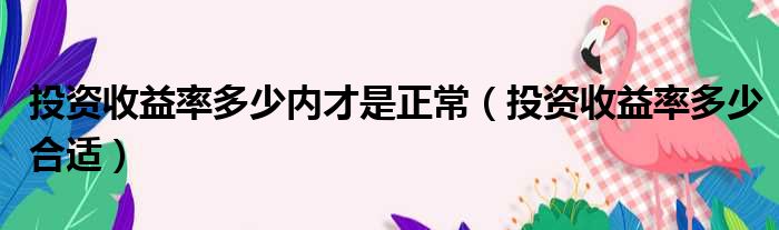 导读 大家好,今天小六子来为大家解答以下的问题,关于投资收益率多少内才是正常,投资收益率多少合适这个很多人还不知道,现在让我们一起来看看