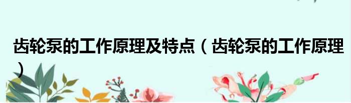 齿轮泵的工作原理及特点(齿轮泵的工作原理)