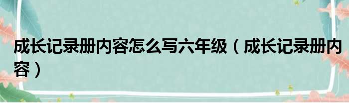 导读 大家好,今天小六子来为大家解答以下的问题,关于成长记录册内容怎么写六年级,成长记录册内容这个很多人还不知道,现在让我们一起来看看吧