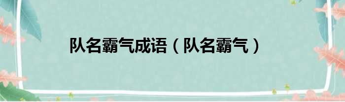 大家好,今天小六子来为大家解答以下的问题,关于队名霸气成语,队名霸气这个很多人还不知道,现在让我们一起来看看吧!