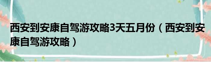 导读 大家好,今天小六子来为大家解答以下的问题,关于西安到安康自驾游攻略3天五月份,西安到安康自驾游攻略这个很多人还不知道,现在让我们一起
