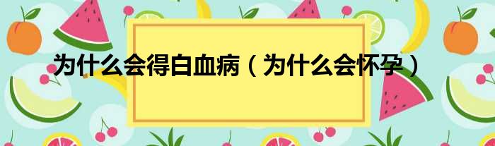 大家好,今天小六子来为大家解答以下的问题,关于为什么会得白血病,为什么会怀孕这个很多人还不知道,现在让我们一起来看看吧!