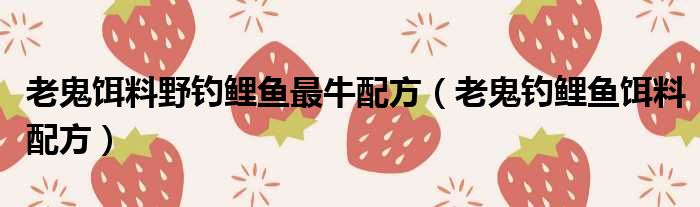 导读 大家好,今天小六子来为大家解答以下的问题,关于老鬼饵料野钓鲤鱼最牛配方,老鬼钓鲤鱼饵料配方这个很多人还不知道,现在让我们一起来看看