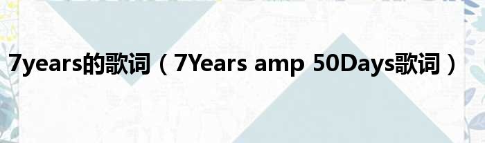 大家好,今天小六子来为大家解答以下的问题,关于7years的歌词,7Years amp 50Days歌词这个很多人还不知道,现在让我们一起来看看吧!