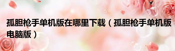 孤胆枪手单机版在哪里下载(孤胆枪手单机版电脑版)