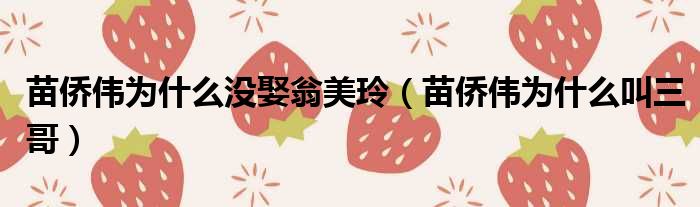 苗侨伟为什么没娶翁美玲(苗侨伟为什么叫三哥)