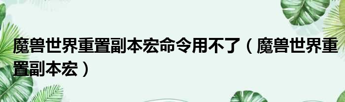 魔兽世界重置副本宏命令用不了(魔兽世界重置副本宏)