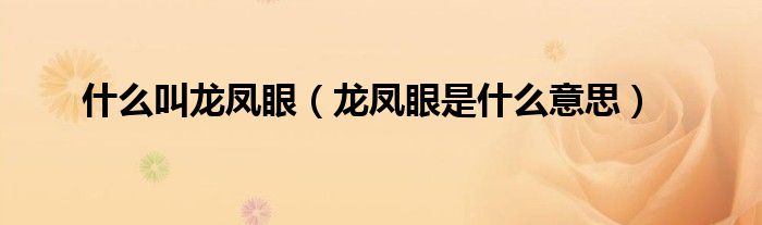 大家好,今天小六子来为大家解答以下的问题,关于什么叫龙凤眼,龙凤眼是什么意思这个很多人还不知道,现在让我们一起来看看吧!