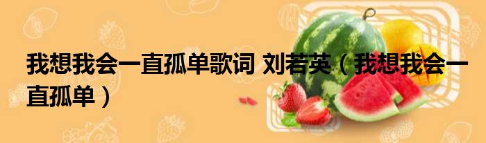 导读 大家好,今天小六子来为大家解答以下的问题,关于我想我会一直孤单歌词 刘若英,我想我会一直孤单这个很多人还不知道,现在让我们一起来看