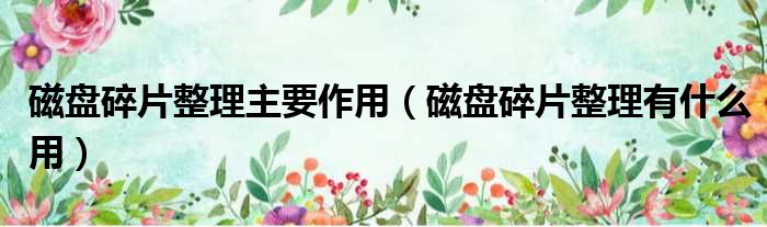 磁盘碎片整理主要作用(磁盘碎片整理有什么用)