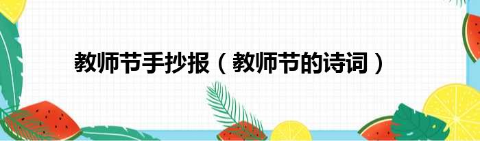大家好,今天小六子来为大家解答以下的问题,关于教师节手抄报,教师节的诗词这个很多人还不知道,现在让我们一起来看看吧!