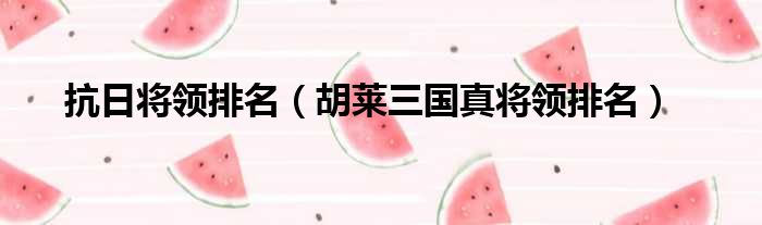 大家好,今天小六子来为大家解答以下的问题,关于抗日将领排名,胡莱三国真将领排名这个很多人还不知道,现在让我们一起来看看吧!