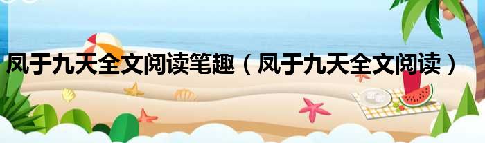 凤于九天全文阅读笔趣(凤于九天全文阅读)