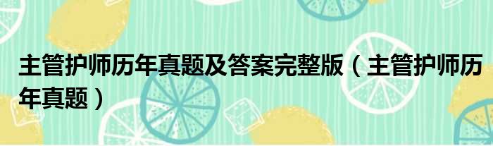 导读 大家好,今天小六子来为大家解答以下的问题,关于主管护师历年真题及答案完整版,主管护师历年真题这个很多人还不知道,现在让我们一起来看