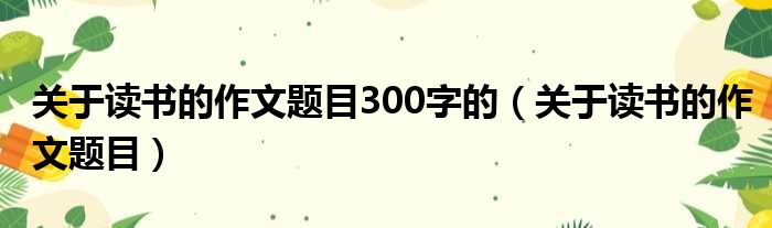 导读 大家好,今天小六子来为大家解答以下的问题,关于关于读书的作文题目300字的,关于读书的作文题目这个很多人还不知道,现在让我们一起来看看