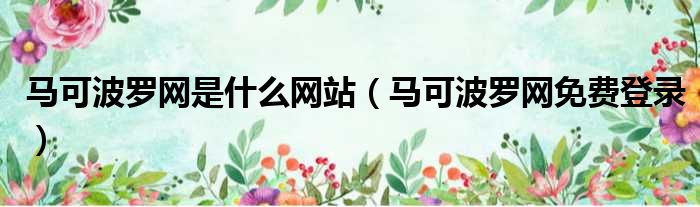 马可波罗网是什么网站(马可波罗网免费登录)