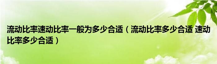导读 大家好,今天小六子来为大家解答以下的问题,关于流动比率速动比率一般为多少合适,流动比率多少合适 速动比率多少合适这个很多人还不知道