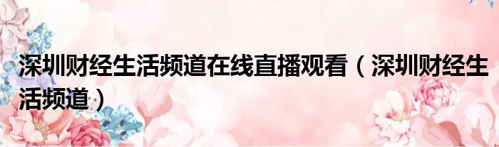 深圳财经生活频道在线直播观看(深圳财经生活频道)