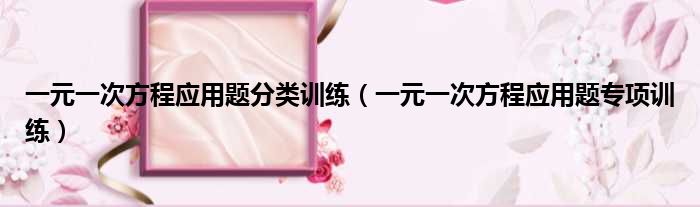 大家好,今天小六子来为大家解答以下的问题,关于一元一次方程应用题分类训练,一元一次方程应用题专项训练这个很多人还不知道,现在让我们一起来看看吧!
