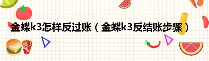 导读 大家好,今天小六子来为大家解答以下的问题,关于金蝶k3怎样反过账,金蝶k3反结账步骤这个很多人还不知道,现在让我们一起来看看吧!1、操作