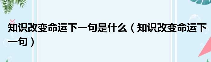 导读 大家好,今天小六子来为大家解答以下的问题,关于知识改变命运下一句是什么,知识改变命运下一句这个很多人还不知道,现在让我们一起来看看