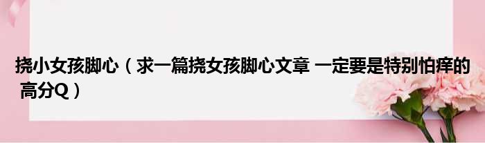 大家好,今天小六子来为大家解答以下的问题,关于挠小女孩脚心,求一篇挠女孩脚心文章 一定要是特别怕痒的 高分Q这个很多人还不知道,现在让我们一起来看看吧!