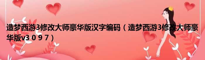 造梦西游3修改大师豪华版汉字编码(造梦西游3修改大师豪华版v3 0 9 7)