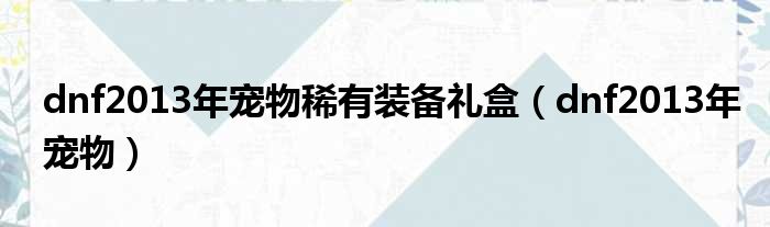 dnf2013年宠物稀有装备礼盒(dnf2013年宠物)