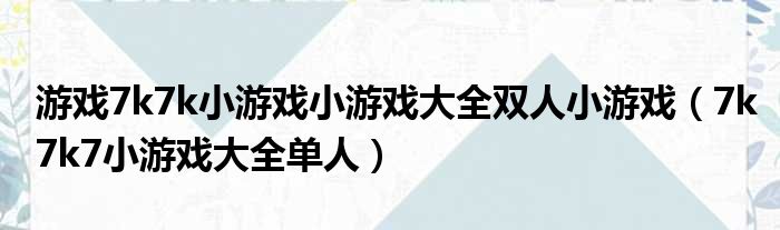 游戏7k7k小游戏小游戏大全双人小游戏(7k7k7小游戏大全单人)