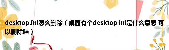 desktop.ini怎么删除(桌面有个desktop ini是什么意思 可以删除吗)