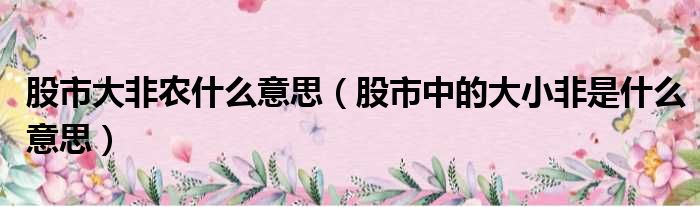 导读 大家好,今天小六子来为大家解答以下的问题,关于股市大非农什么意思,股市中的大小非是什么意思这个很多人还不知道,现在让我们一起来看看