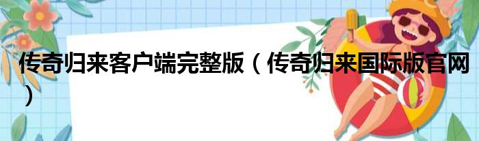 导读 大家好,今天小六子来为大家解答以下的问题,关于传奇归来客户端完整版,传奇归来国际版官网这个很多人还不知道,现在让我们一起来看看吧!1